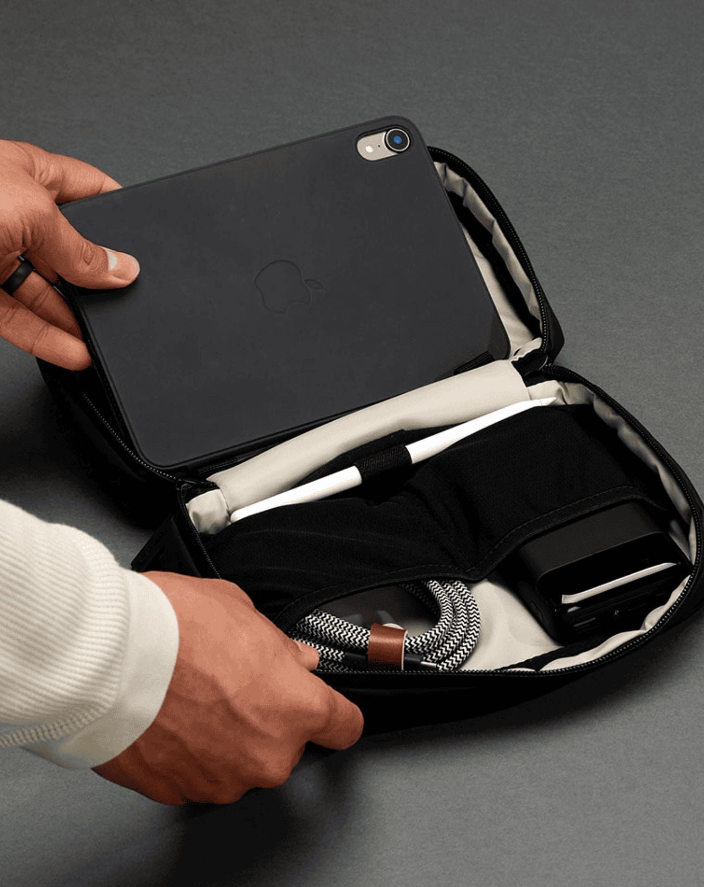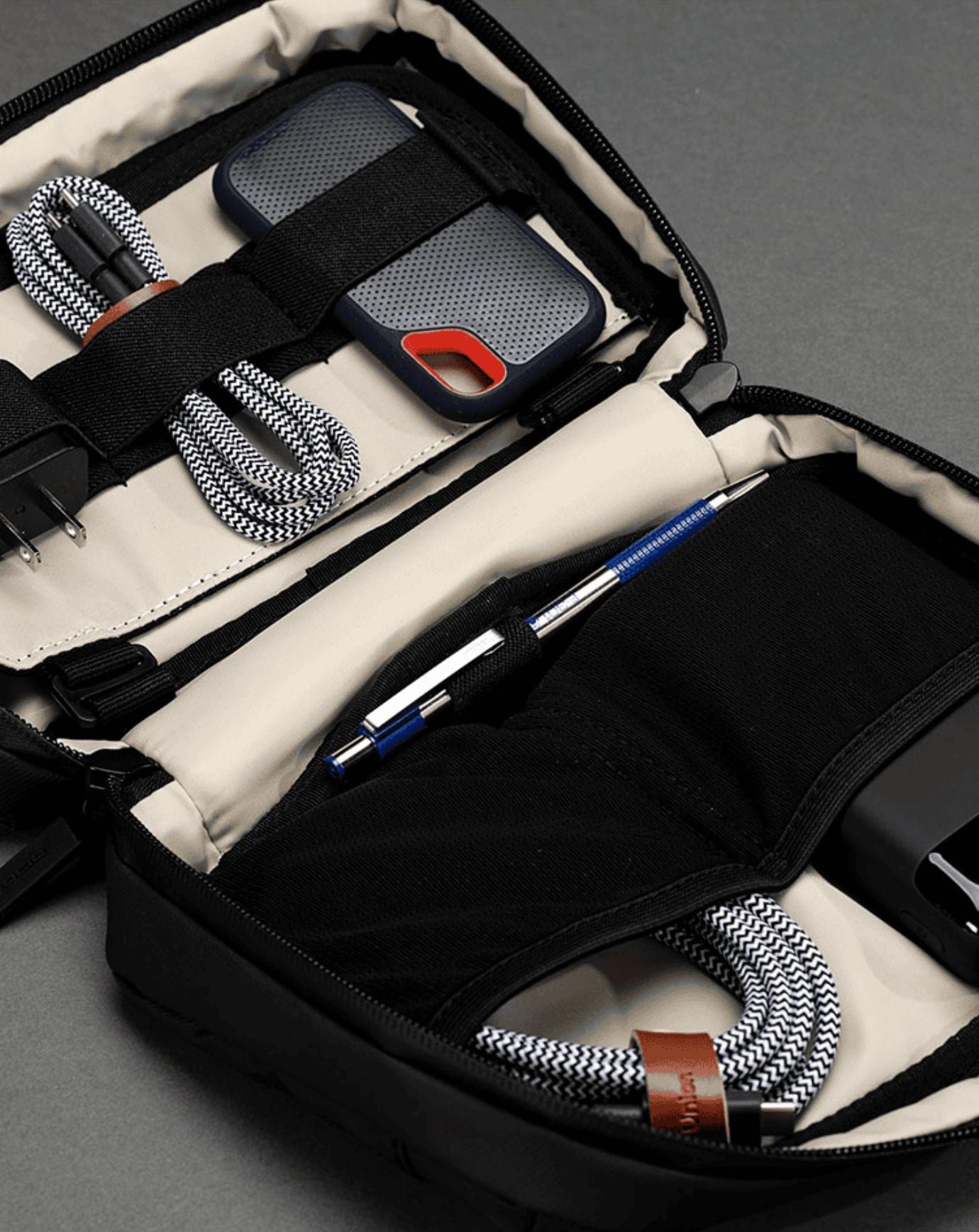 Introducing the Tech Case from our Pace travel collection - designed for both daily use and travel. Featuring 7 functional pockets, an elastic organisation panel, and a pen loop, this compact case keeps your tech essentials neatly stored and easily accessible. The removable top organisation panel adds even more versatility, allowing you to customise your setup. Perfect for tech enthusiasts on-the-go.